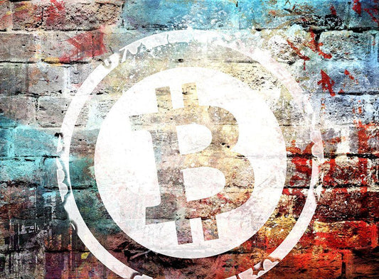 Bitcoin Off the Wall White Modern Wood Framed Art Print with Double Matting by Smith, Karen