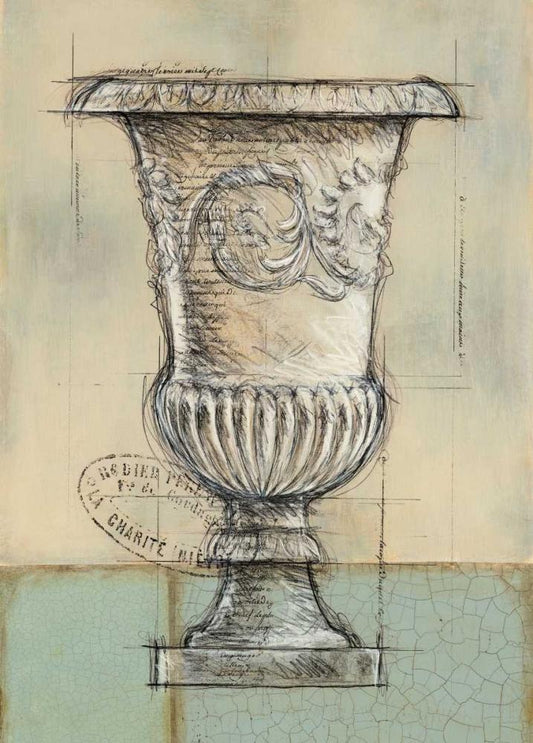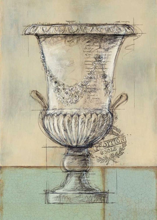 Abstract Urn 1 White Modern Wood Framed Art Print with Double Matting by Z Studio