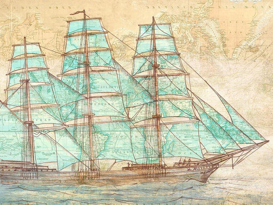 Sailing to the World White Modern Wood Framed Art Print with Double Matting by Joannoo