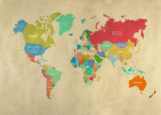 Modern Map of the World White Modern Wood Framed Art Print with Double Matting by Joannoo