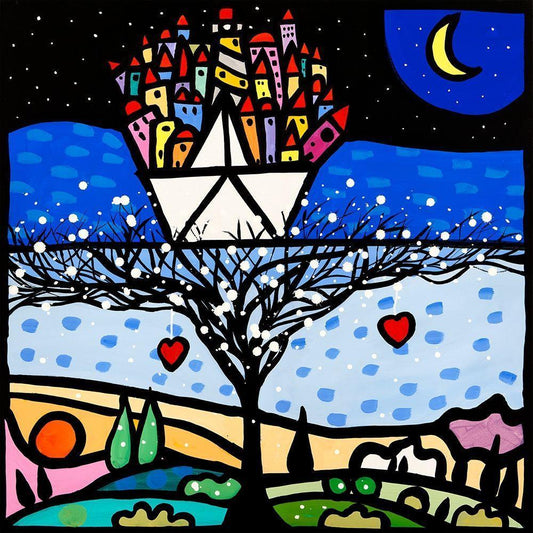 Nella citta dei sogni cE sempre amore White Modern Wood Framed Art Print with Double Matting by Wallas