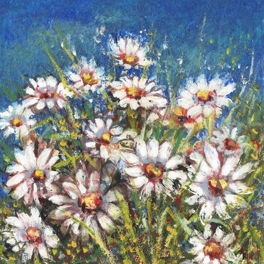 Margherite in fiore White Modern Wood Framed Art Print with Double Matting by Luigi, Florio