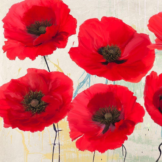 Washed Poppies (Red and Gold) I White Modern Wood Framed Art Print with Double Matting by Sanna, Leonardo