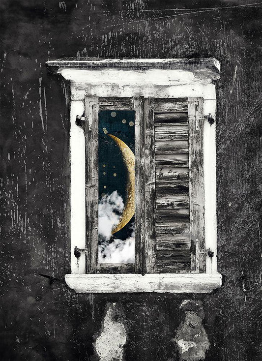 Moon Window White Modern Wood Framed Art Print with Double Matting by Sommers, Mindy