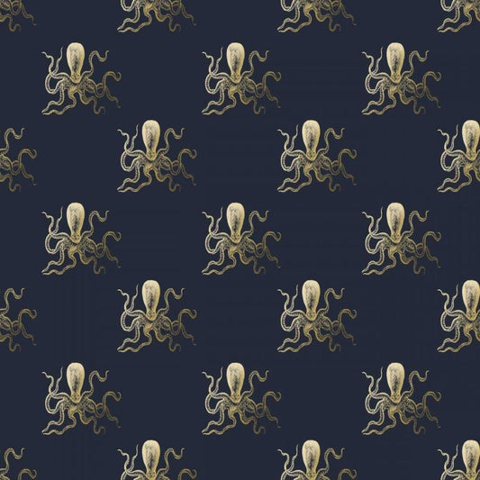 Golden Octopus White Modern Wood Framed Art Print with Double Matting by Murdock, Ramona