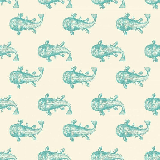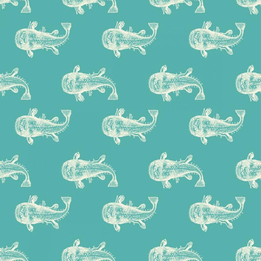 Monster Fish Pattern White Modern Wood Framed Art Print with Double Matting by Murdock, Ramona