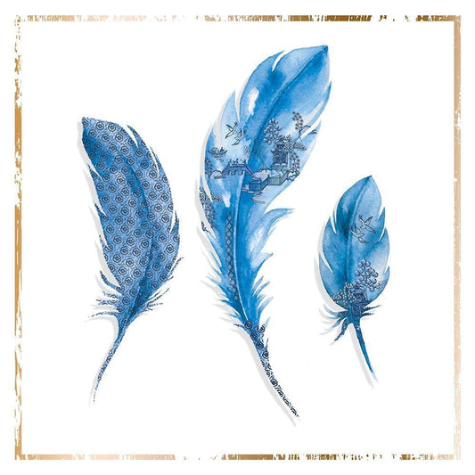Blue Feather Bliss III White Modern Wood Framed Art Print with Double Matting by P.S. Art