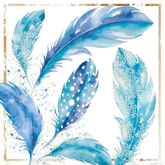 Blue Feather Bliss I White Modern Wood Framed Art Print with Double Matting by P.S. Art
