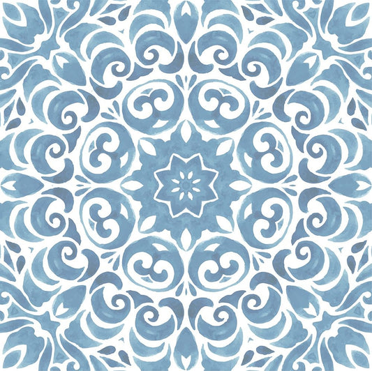 Coastal Blue Pattern II White Modern Wood Framed Art Print with Double Matting by ND Art
