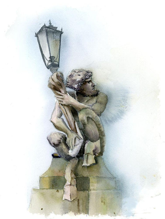Lamp Post White Modern Wood Framed Art Print with Double Matting by Shefranov, Olga