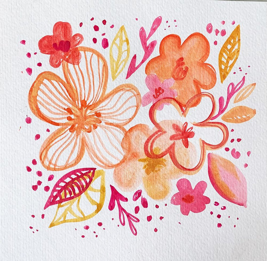 Pink Flowers White Modern Wood Framed Art Print with Double Matting by Rupp, Mariah