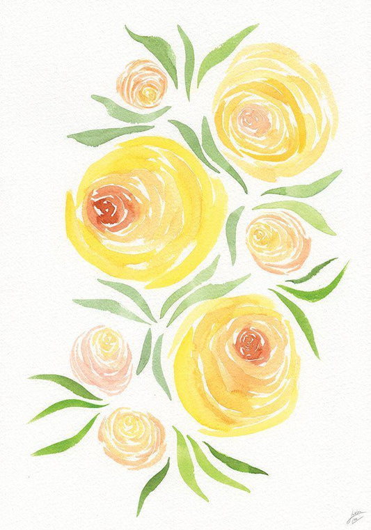 Yellow Roses White Modern Wood Framed Art Print with Double Matting by Lee, Judson