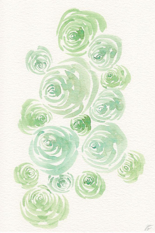 Gentle Mint Roses White Modern Wood Framed Art Print with Double Matting by Lee, Judson