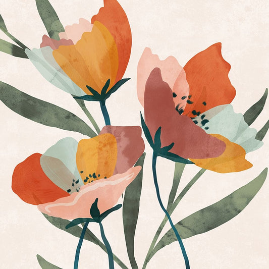 Autumn Fireworks Flowers I White Modern Wood Framed Art Print with Double Matting by Lee, Judson
