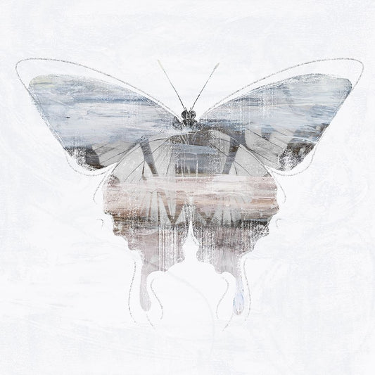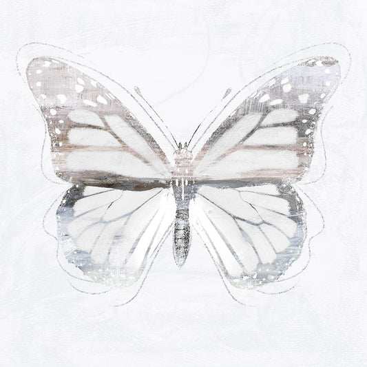 Silver Butterfly White Modern Wood Framed Art Print with Double Matting by Blue, Nina