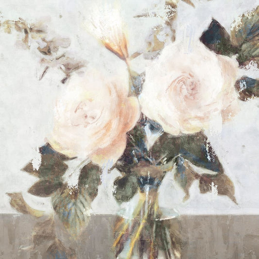 Antique Rose II White Modern Wood Framed Art Print with Double Matting by Blue, Nina