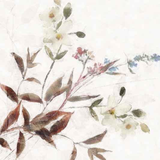 Neutral Wild Flowers White Modern Wood Framed Art Print with Double Matting by Blue, Nina