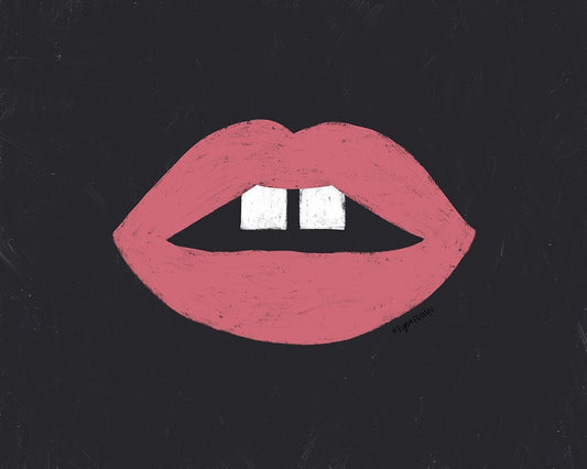 Pink Lips White Modern Wood Framed Art Print with Double Matting by Brown, Kyra