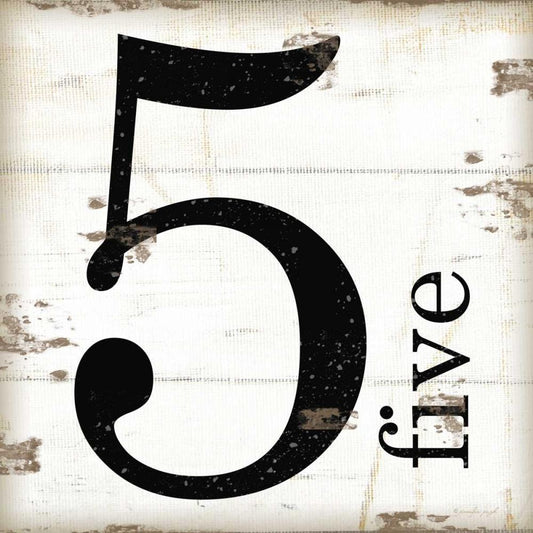 Farmhouse Five 5 White Modern Wood Framed Art Print with Double Matting by Pugh, Jennifer
