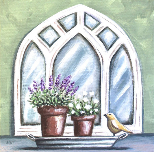 Window Planter White Modern Wood Framed Art Print with Double Matting by Tyndall, Elizabeth