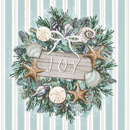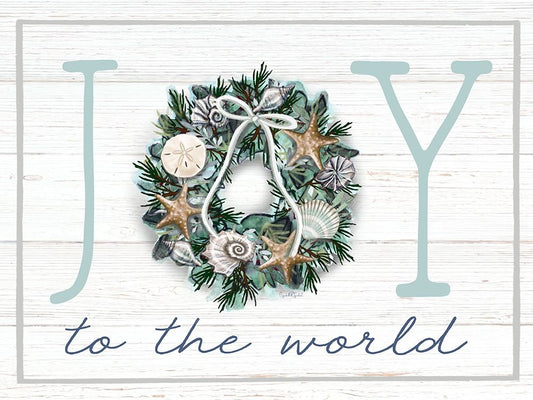 Coastal Christmas - Joy White Modern Wood Framed Art Print with Double Matting by Tyndall, Elizabeth
