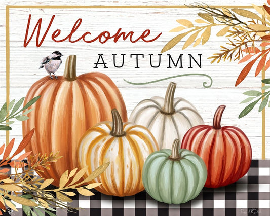 Welcome Autumn White Modern Wood Framed Art Print with Double Matting by Tyndall, Elizabeth