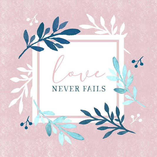 Love Never Fails White Modern Wood Framed Art Print with Double Matting by Tyndall, Elizabeth