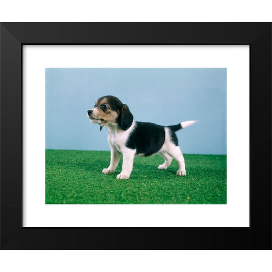 1960's Image Collection by ClassicStock - Black Modern Wood Framed Art Print Titled: BEAGLE PUPPY STANDING ON ARTIFICIAL TURF GRASS SIDE VIEW