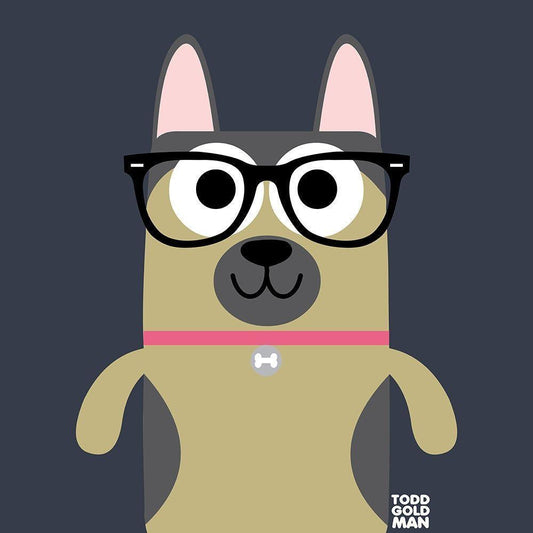 Bow Wow German Shepherd White Modern Wood Framed Art Print by Todd Art