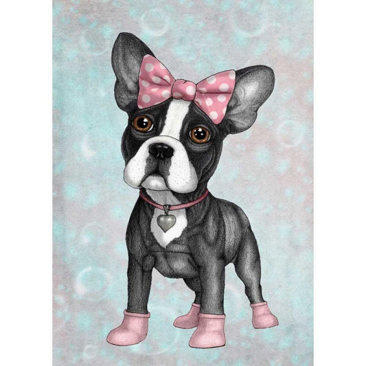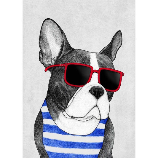 Frenchie Summer Style White Modern Wood Framed Art Print by Barruf