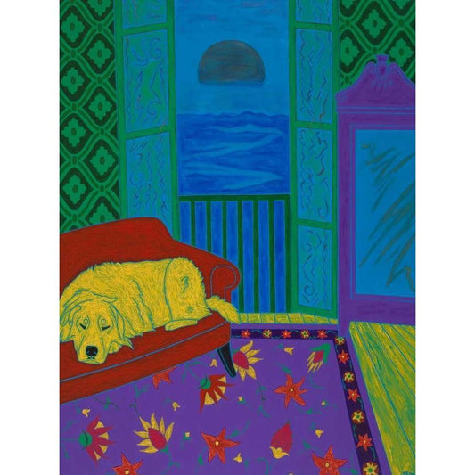 Beagle with Beaulieu Palace White Modern Wood Framed Art Print by Barruf