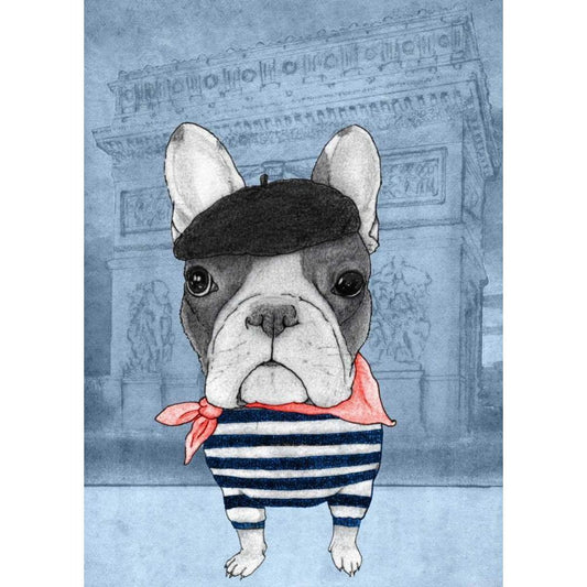 French Bulldog with Arc de Triomphe White Modern Wood Framed Art Print by Barruf