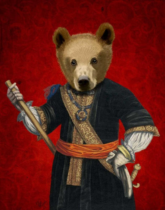 Bear in Blue Robes White Modern Wood Framed Art Print with Double Matting by Fab Funky