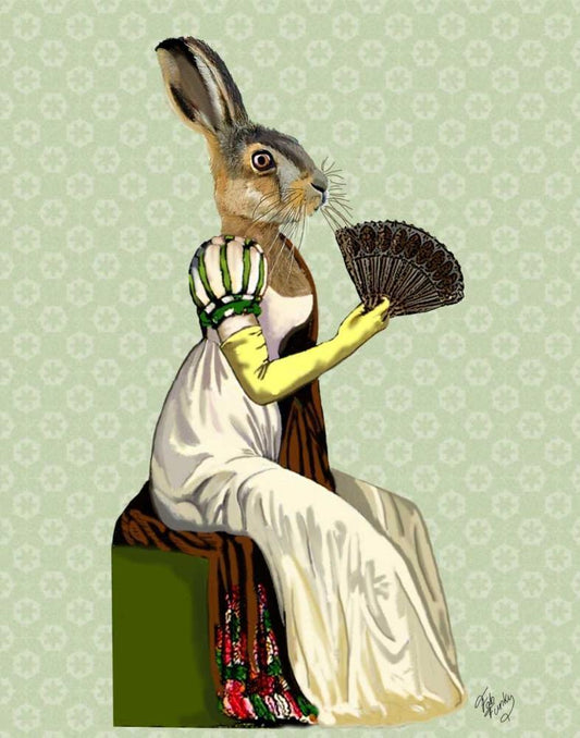 Miss Hare White Modern Wood Framed Art Print with Double Matting by Fab Funky