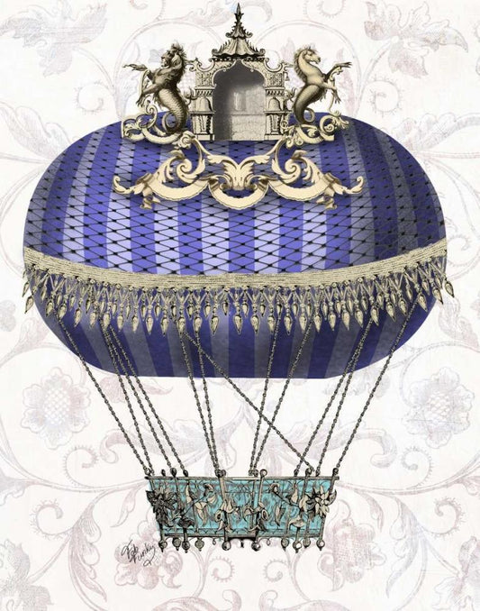 Baroque Balloon Blue and Cream White Modern Wood Framed Art Print with Double Matting by Fab Funky