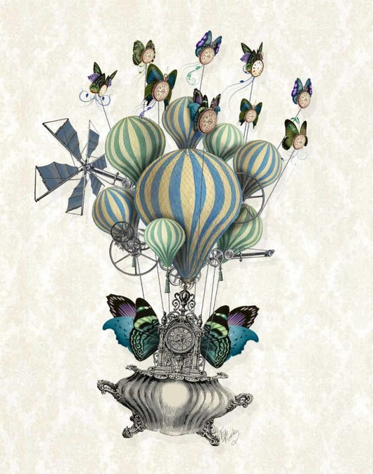 Baroque Balloon with Clock White Modern Wood Framed Art Print with Double Matting by Fab Funky