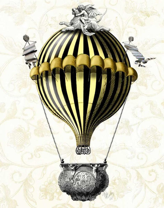Baroque Balloon Black Yellow White Modern Wood Framed Art Print with Double Matting by Fab Funky