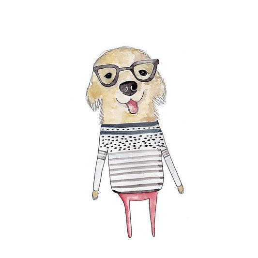 Puppy Glasses White Modern Wood Framed Art Print by Straatsma, Leah