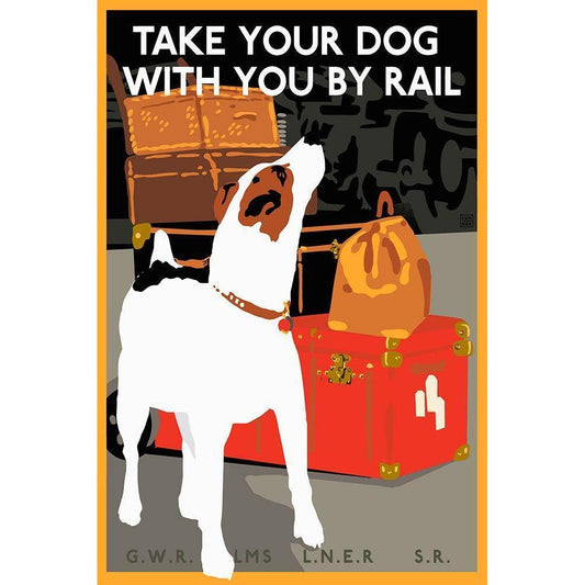 Dog by Rail White Modern Wood Framed Art Print by Vintage Apple Collection