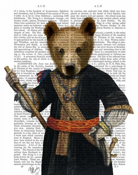 Bear in Blue Robes White Modern Wood Framed Art Print with Double Matting by Fab Funky