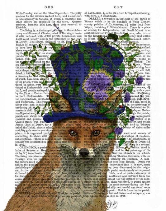 Fox Mad Hatter White Modern Wood Framed Art Print with Double Matting by Fab Funky