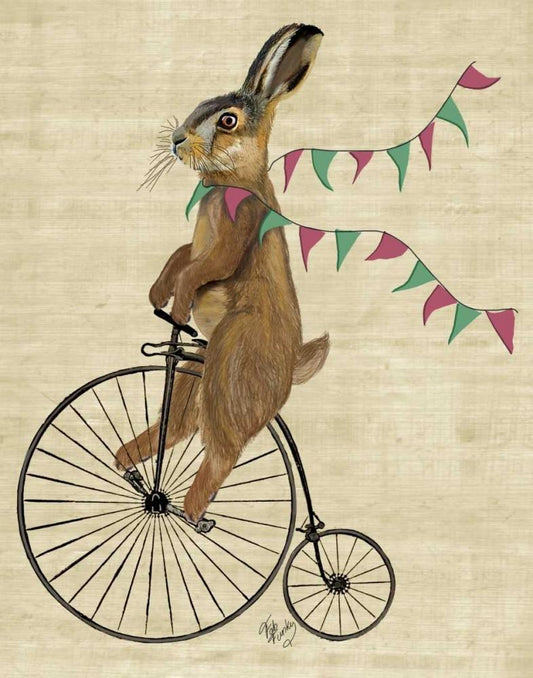 Rabbit On Penny Farthing White Modern Wood Framed Art Print with Double Matting by Fab Funky