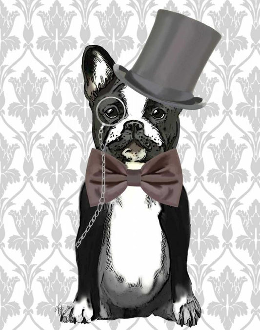 Monsieur Bulldog White Modern Wood Framed Art Print with Double Matting by Fab Funky