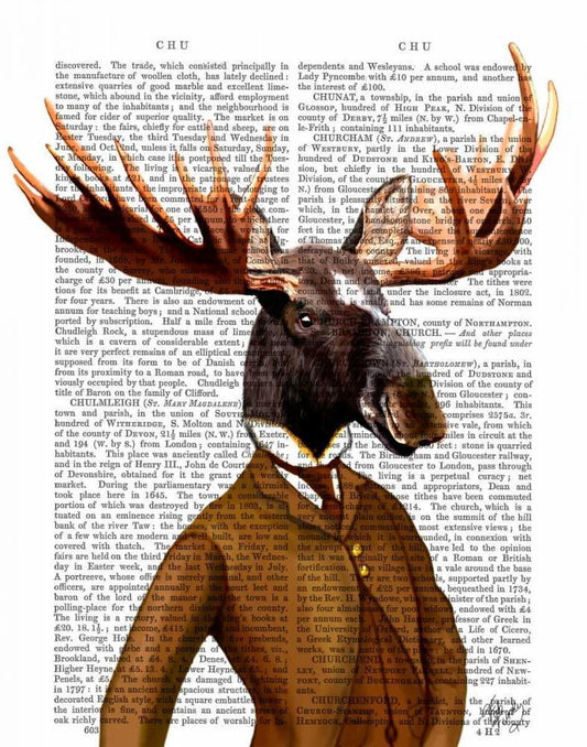 Moose In Suit Full White Modern Wood Framed Art Print with Double Matting by Fab Funky