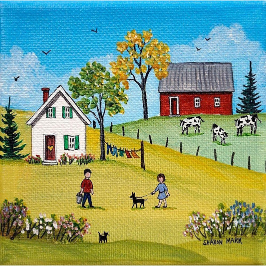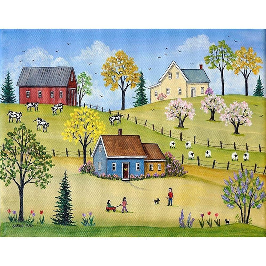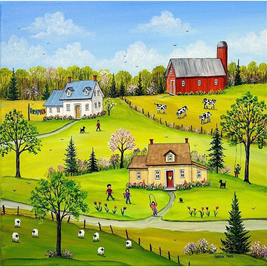 Little Homesteads White Modern Wood Framed Art Print by Mark, Sharon
