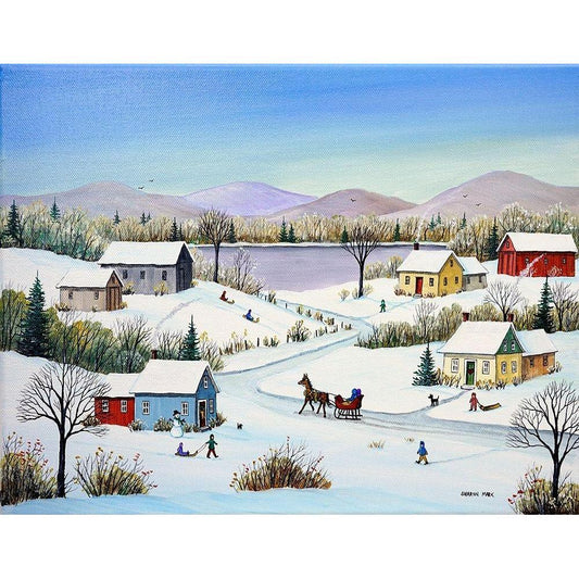 The Snow is Here White Modern Wood Framed Art Print by Mark, Sharon
