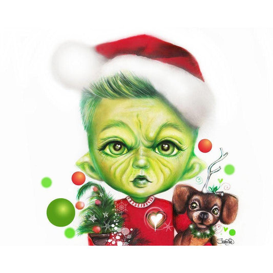 Grinchie Guy - MunchkinZ Elf White Modern Wood Framed Art Print by Sheena Pike Art