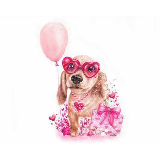 Pawsitively Love You - Daschund White Modern Wood Framed Art Print by Sheena Pike Art