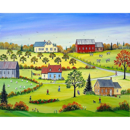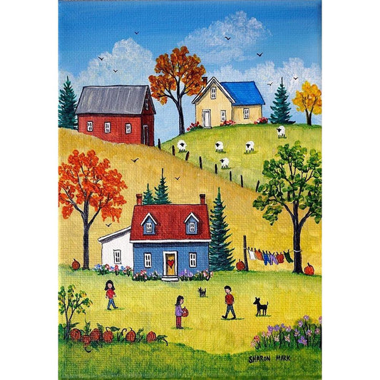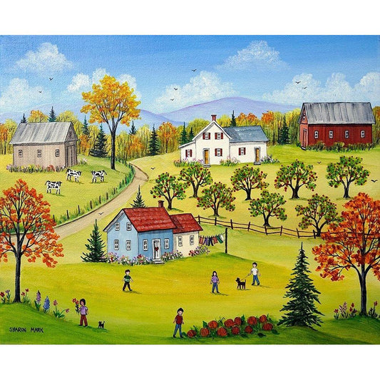 Country Kids and Pumpkins White Modern Wood Framed Art Print by Mark, Sharon