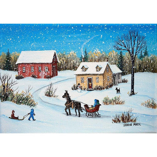 Horse and Sleigh White Modern Wood Framed Art Print by Mark, Sharon